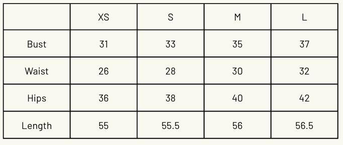 Note: The fabric is cut on the bias. It is best to follow your measurements based on the size guide and not product measurements. All measurements are in inches.